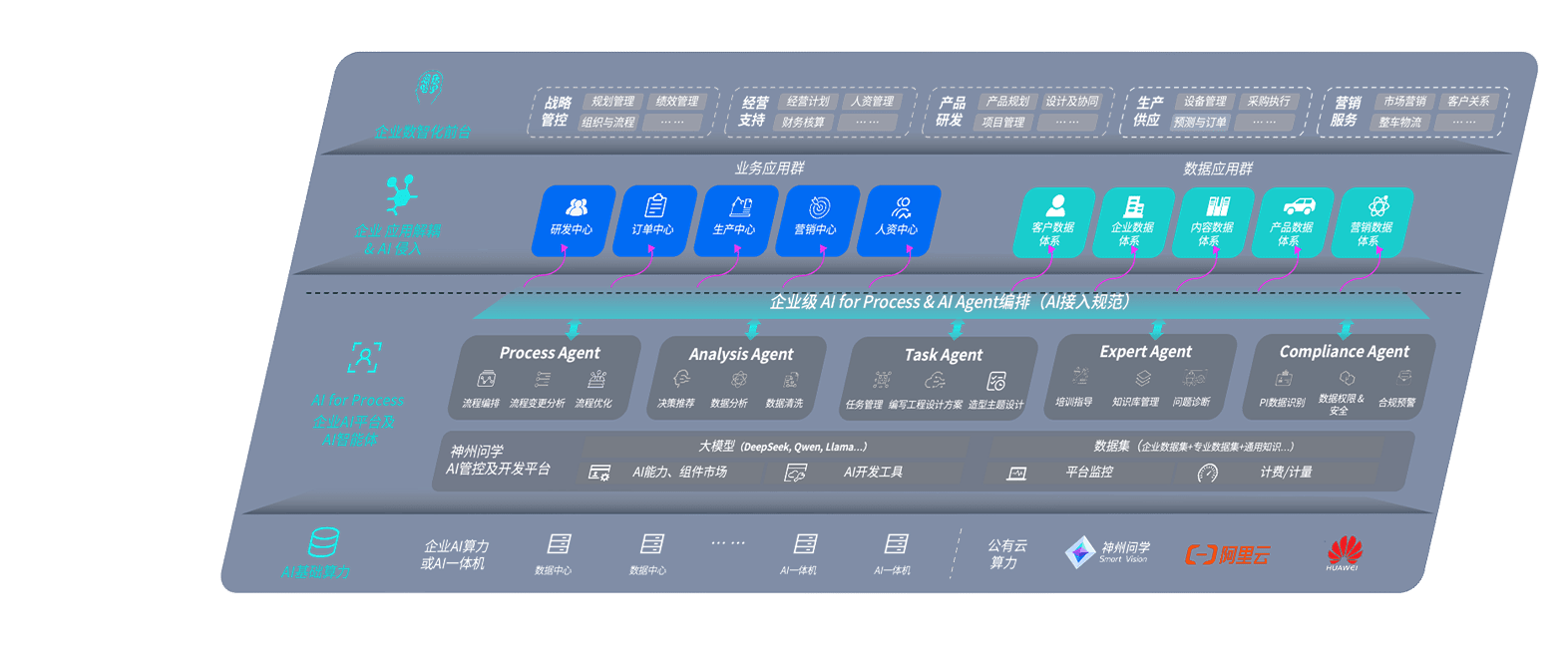 端到端的一站式AI工作空间深度融合了从企业战略规划到日常经营的全流程业务板块,,定向解决车企内部领域多、、、、部门多、、链条长、、、、场景碎片化等难题,,支持车企快速构建以AI为核心的生产力写作体系,,,,实现任务执行与AI能力的无缝集成与交互